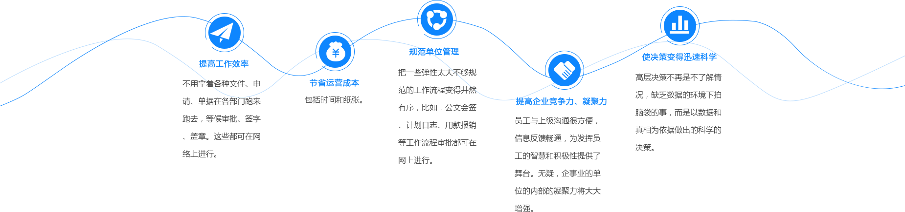 無(wú)論是企業(yè)還是政府機(jī)關(guān),都會(huì)有大量的文案需要處理,復(fù)雜的工作流程需要安排,決策者需要依據(jù)紛亂的信息作出重要的決定。擁有一套智能化、信息化的辦公系統(tǒng),對(duì)辦公人員和企業(yè)決策者來(lái)說(shuō),工作效率上的提高是顯而易見(jiàn)的。在網(wǎng)絡(luò)連接千萬(wàn)家的時(shí)代,辦公自動(dòng)化還使得不同地理位置之間的不同單位或部門(mén)之間進(jìn)行協(xié)同辦公成為可能。今天的中國(guó),“企業(yè)信息化”、“政府部門(mén)信息化”都忙得如火如荼,一套優(yōu)秀的辦公自動(dòng)化(OA)系統(tǒng)將是企事業(yè)單位邁進(jìn)數(shù)碼時(shí)代的“基石”。