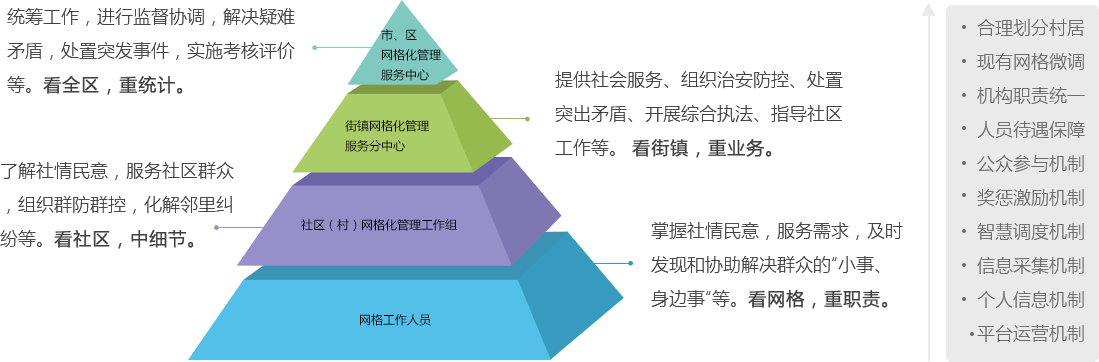 網(wǎng)格化社區(qū)綜合管理平臺運用大數(shù)據(jù)和移動互聯(lián)技術(shù),對網(wǎng)格內(nèi)的人、地、事、物、情、組織的六大基本要素進(jìn)行全面的采集和管理。將數(shù)據(jù)進(jìn)行處理,使靜態(tài)數(shù)據(jù)變成動態(tài)數(shù)據(jù),將數(shù)據(jù)變得可視化、精細(xì)化,共享到職能部門提供支持。推進(jìn)資源整合、綜合研判、指揮調(diào)度、綜合執(zhí)法、聯(lián)勤聯(lián)動、考核督辦、系統(tǒng)運維等工作機制高效運轉(zhuǎn)。